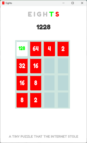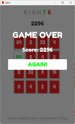 2048 is a free game that is often cloned and used as practice for developing a casual puzzle game. However, it was based off of an excellent game named Threes! by Sirvo in 2014. This 2048 clone is a tribute to the actual original game that started the genre. I have nothing but respect for Sirvo and I hope they appreciate this description.